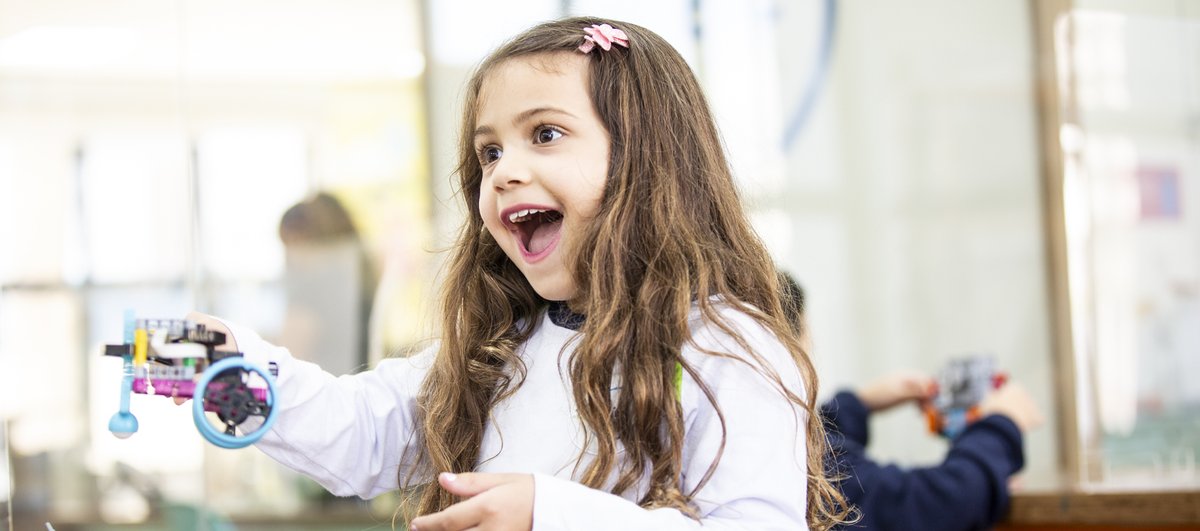 As salas de aula possuem dispositivos para a integração com a tecnologia, tais como: quadro interativo, tablets e Chromebooks. A Escola conta ainda com um Design Lab, especialmente projetado para a realização de projetos na área de tecnologia e Design Thinking.